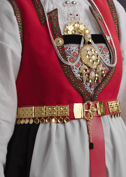 Til vinterbunaden er det tradisjon for sølvbelte med oksiderte stølar og svart skinnlist. Ein stabbursnøkkel festa i beltet er eit vakkert og meiningsfullt tilbehøyr. Visste du at stabbursnøkkelen var eit statussymbol?