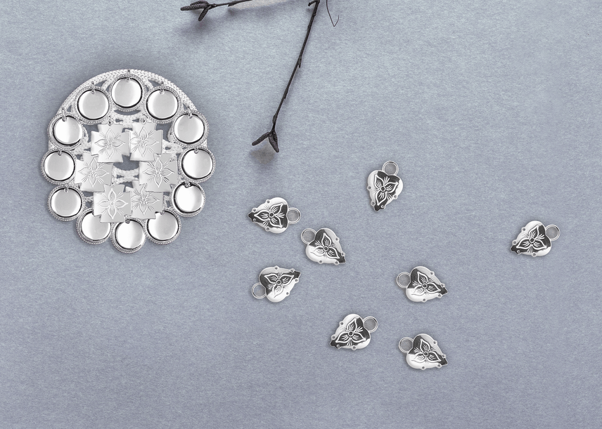 Det graverte sølvet er kjenneteikna av vakkert inngravert blomedekor. Mønsteret harmonerer perfekt med florabroderiet på rogalandsbunaden. Sjå heile utvalet her.