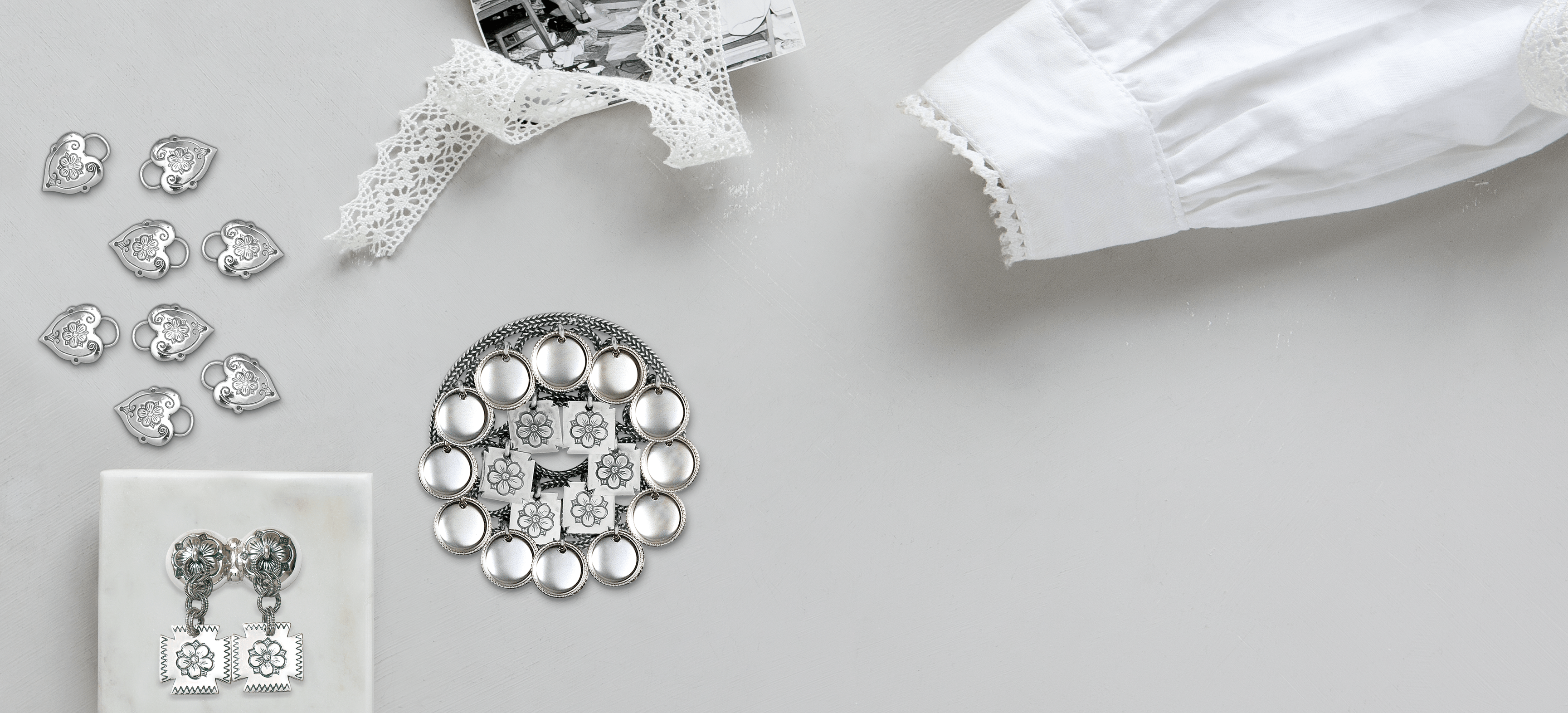 Bunadsølvet med Olavsrosen vert brukt i ulike distrikt, bl.a. Møre og Romsdal, Trøndelag og Rogaland. Kjenneteikn ved sølvet er 5-bladsrosa som var eit av symbola Olav den Heilage nytta. Kniv, stabbursnøklar og klokke med klokkekjede er fint tilbehør.